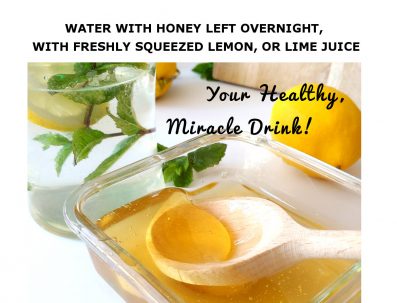 WATER WITH HONEY LEFT OVERNIGHT, WITH FRESHLY SQUEEZED LEMON, OR LIME JUICE